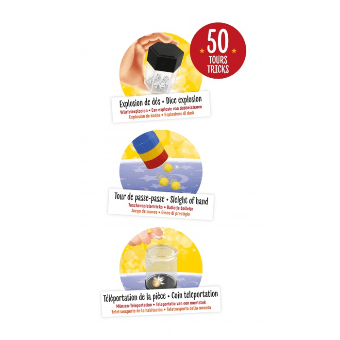 Bereid je 50-trucs tellende goochelshow voor: bekijk de video's en leer in je eigen tempo met stapsgewijze instructies. De Amazing set bevat iconische trucs zoals de dobbelsteenexplosie en de kamerteleportatie.Inclusief: rekwisieten voor mentalisme, close-up magie en kaarttrucs.Scan de QR-codes voor toegang tot online video's.